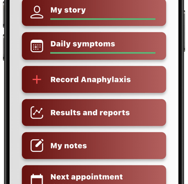 To do this, select the appropriate triggers and reactions from a predefined list (e.g. food, environmental factors) and, if applicable, your emergency medication.