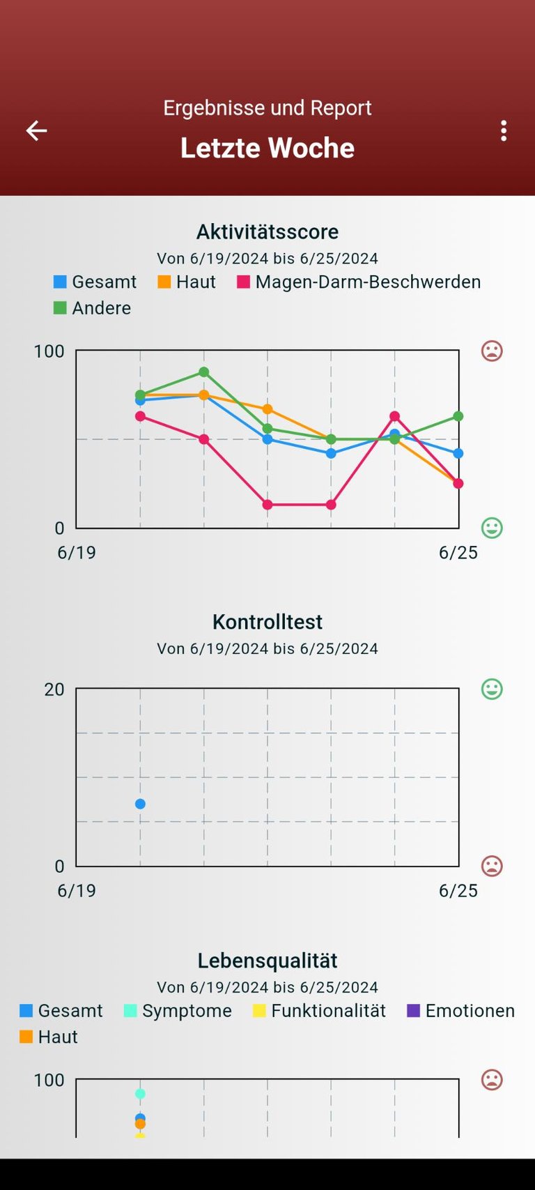 Die Darstellungen des Kontrolltests und der Lebensqualität enthalten immer die Auswertungen der letzten 6 Monate.